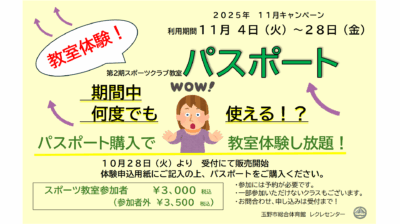 などなど、そんな時にはお得な教室体験パスポートをぜひご利用ください。